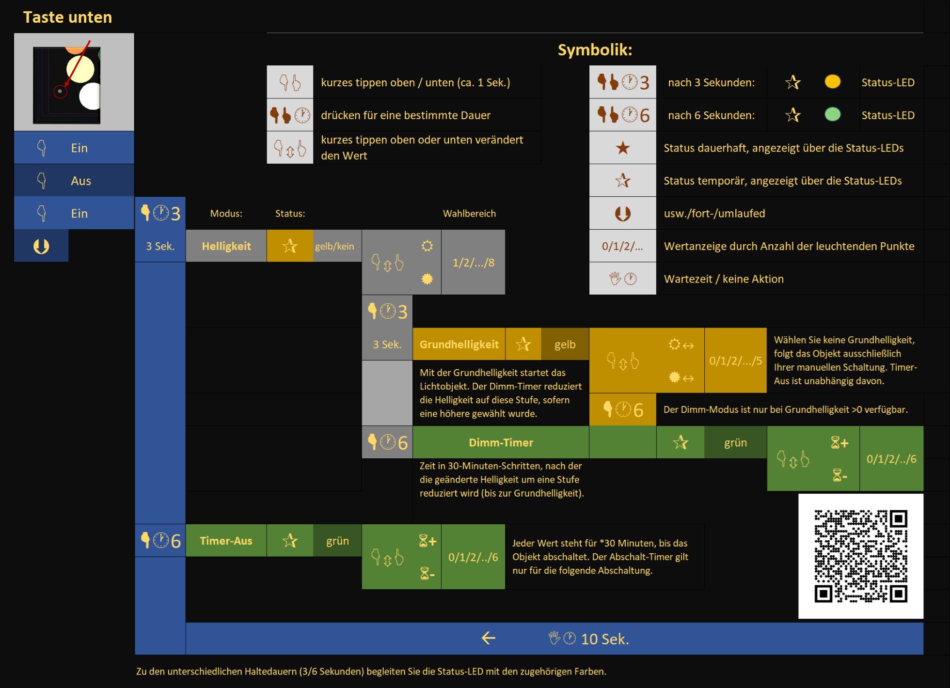 Bei eingeschaltetem Objekt ändern Sie durch kurzes drücken der oberen Taste den Betriebsmodus.