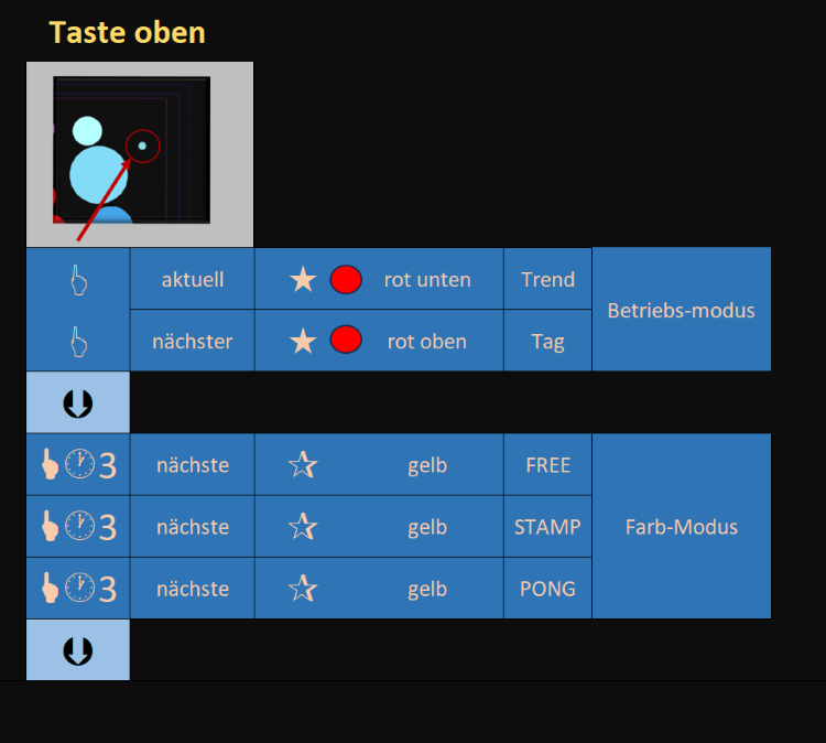 Bei eingeschaltetem Objekt ändern Sie durch kurzes drücken der oberen Taste den Betriebsmodus.